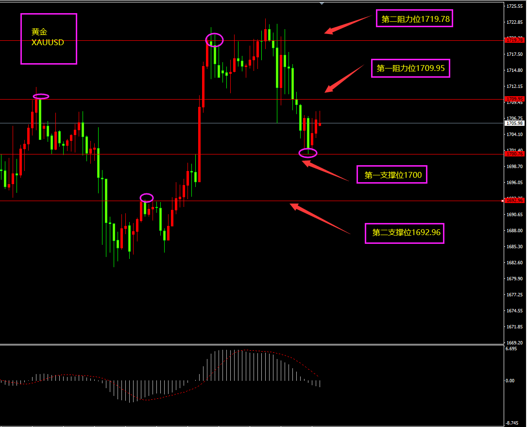策略分析:第一、二支撑位附近轻仓看多,如有大阴线跌破第二支撑则转为观望。