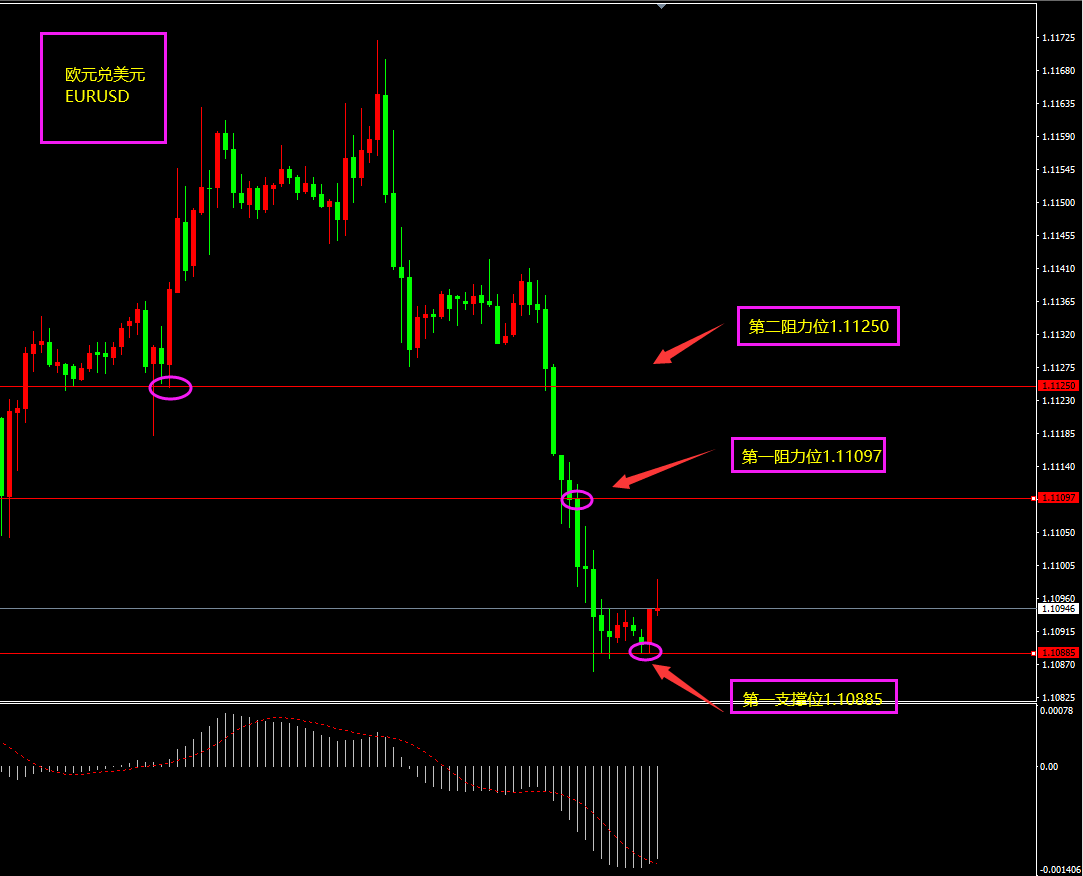 技术点评:天图欧元近两日出现大幅回落,因美指冲高对欧元形成打压,短期MACD位于0轴之上,多头仍在,关注底部是否有小阳线,阳线出则多头起。小时图欧元期间连续以大阴线下跌,MACD位于0轴之下,短期空头占优,关注底部是否有连续阳线或者大阳线产生,日内更多低位看多为主。