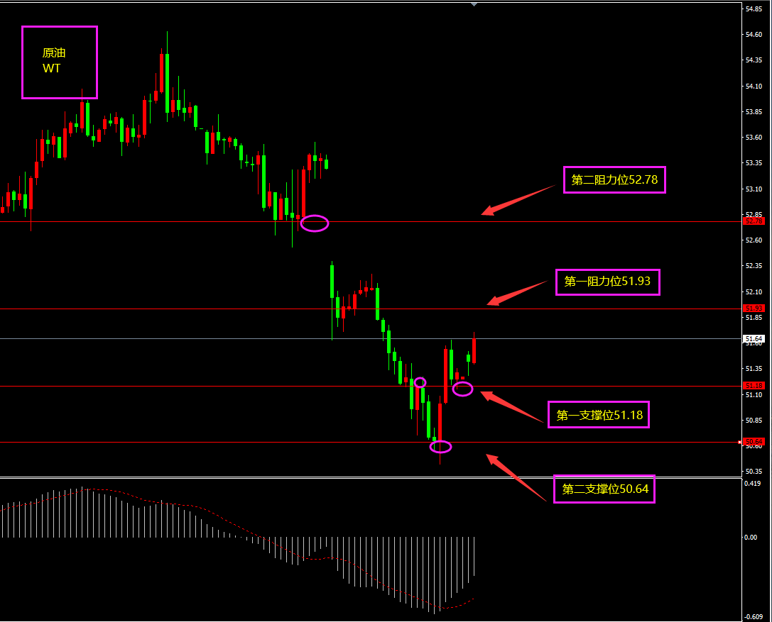 趋势分析:原油处在下降回调走势,短期处在低位震荡。