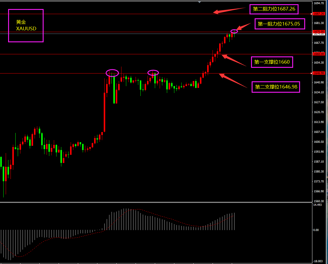 关注点:黄金上方阻力位1687是否突破?