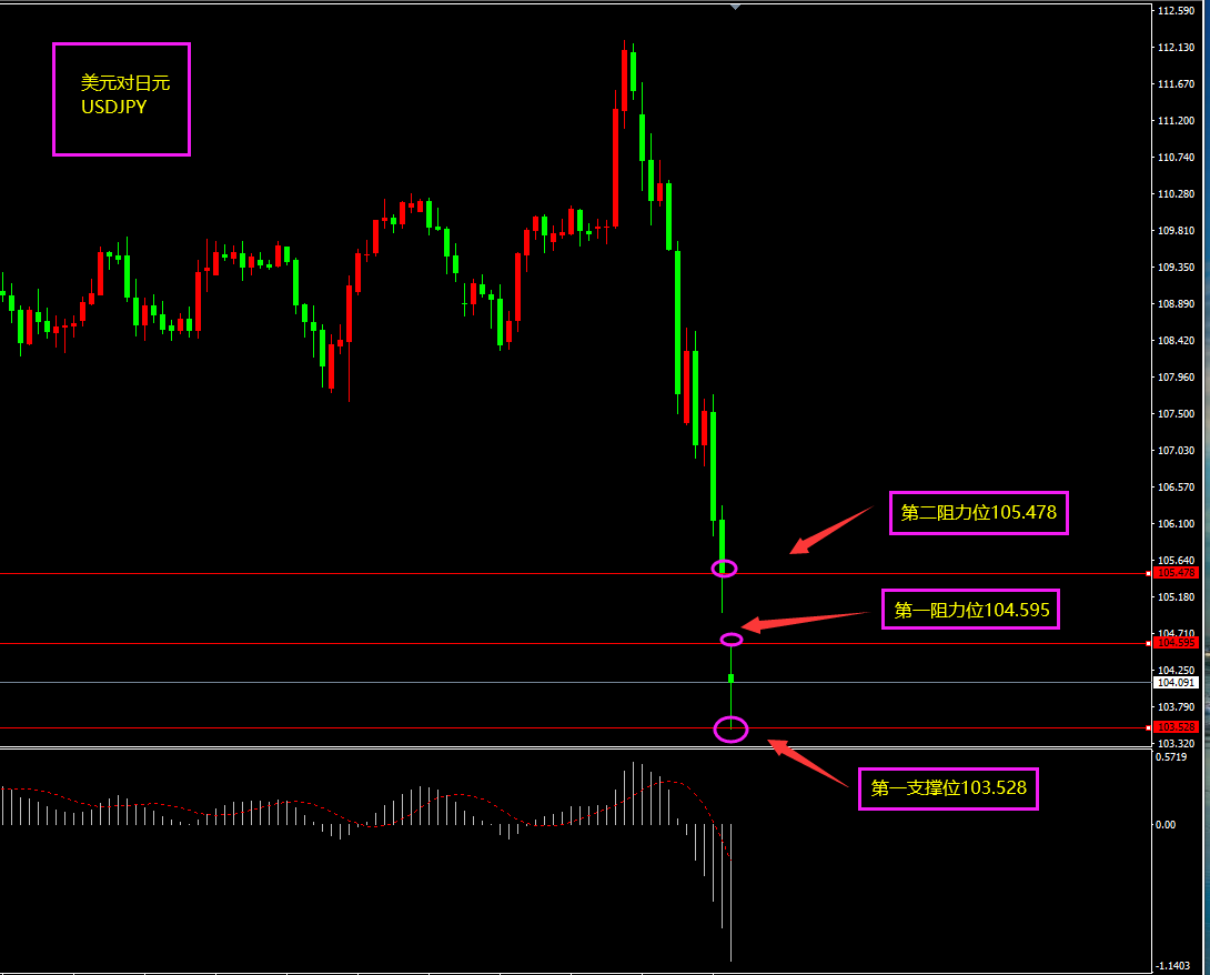 趋势分析:美指暴跌,带动美日下行,避险增强,短期看空美日。