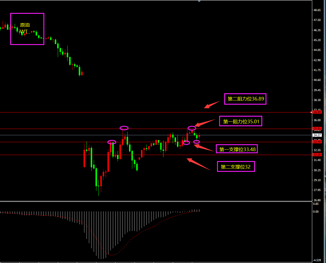 策略分析:第一、二阻力位附近轻仓看空。第一、二支撑位附近轻仓看多。